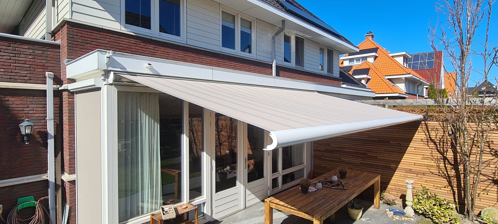 Zie je ze wel eens hangen? Zo’n oranje fletse zonwering bij een woning? Vaak vallen de karakteristieke eigenschappen van een woning hierdoor minder op. Met de Weinor Opal Design II hoef je hier niet bang voor te zijn. Of het nu gaat over de nieuwste techniek in het zonweringsdoek of over de geïntegreerde ledverlichting: met de Weinor Opal Design II haal je design, klasse en topkwaliteit in huis.