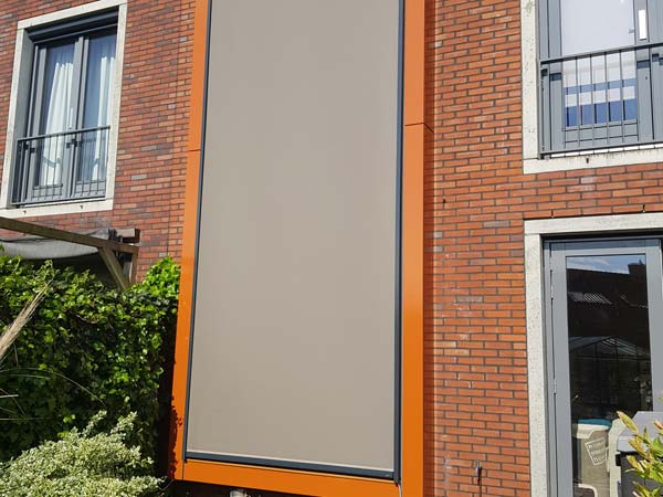 De Sunmaster SunZip design screens zijn van in de gewenste RAL kleur gepoedercoat. Hierdoor sluit het perfect aan op de kozijnen. Zeker als de screens omhoog zijn, valt het minder op.