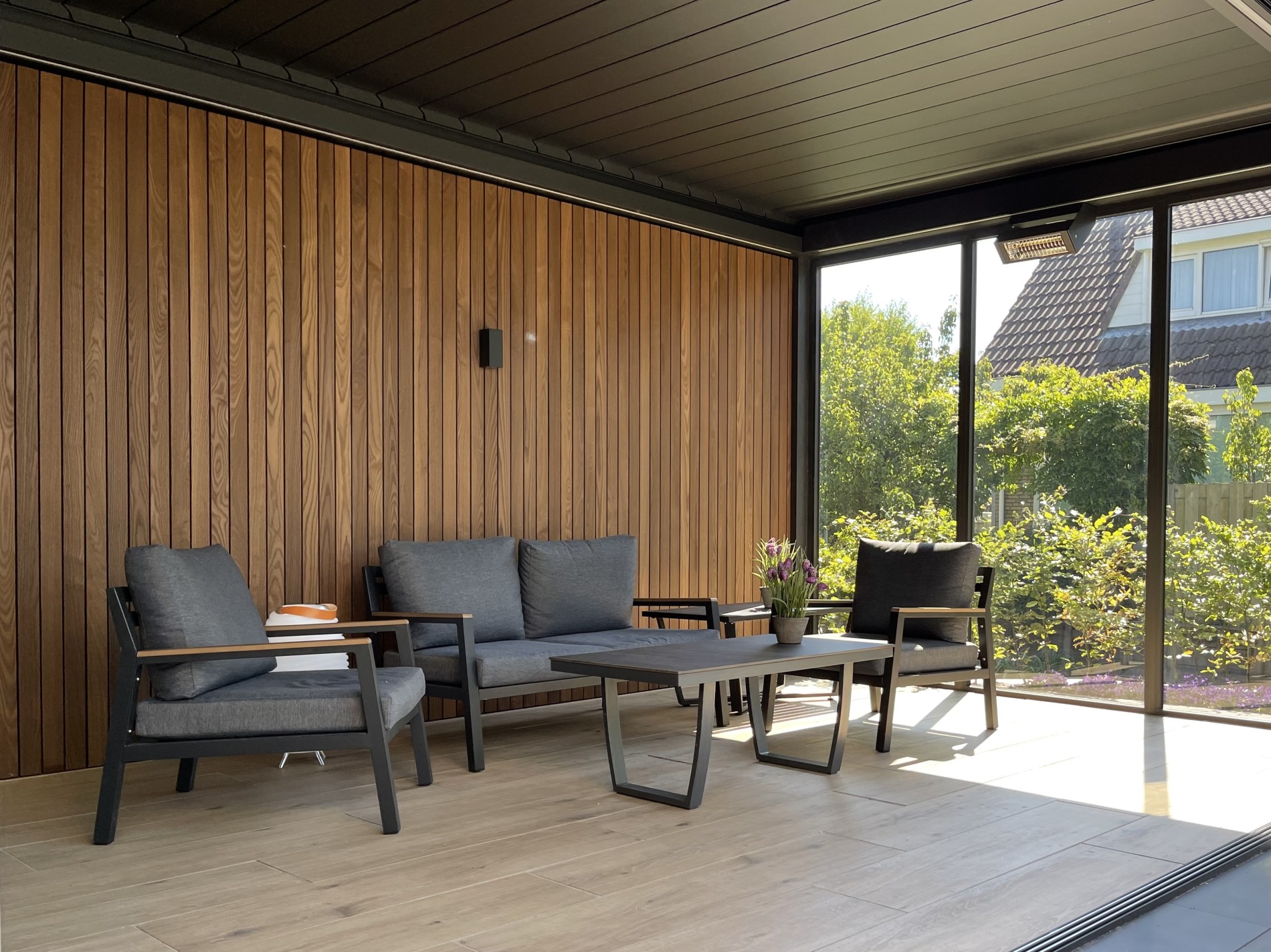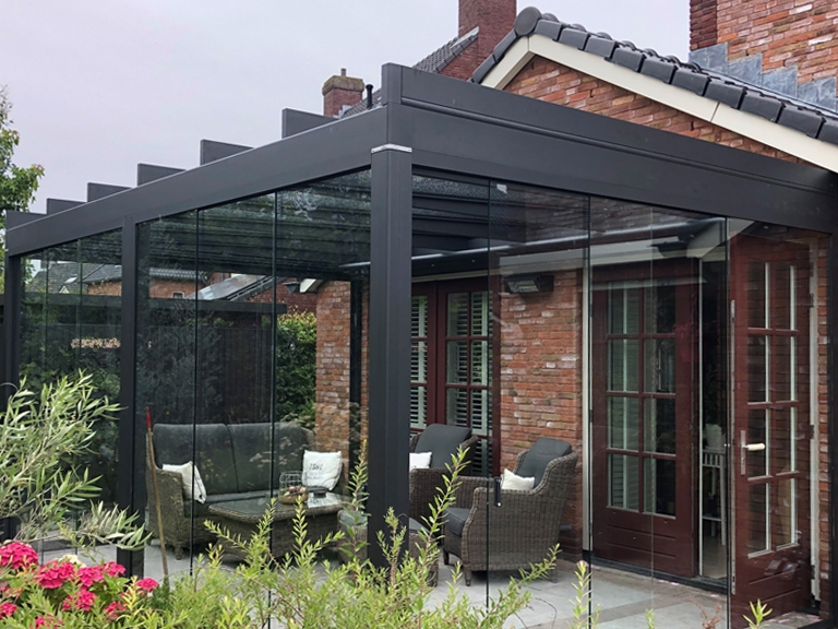 De zon steekt door de gekantelde lamellen uw buitenverblijf in, terwijl een heerlijk briesje over uw gezicht waait. Met een lamellen overkapping beschikt u over een buitenruimte waar het heerlijk vertoeven is. Het is misschien wel de chiqueste oplossing onder de zonweringen. Met de vele opties kunt u de ruimte ook nog eens echt eigen maken. Van glazen schuifwanden tot aan de achterwand in een duurzame houtsoort.