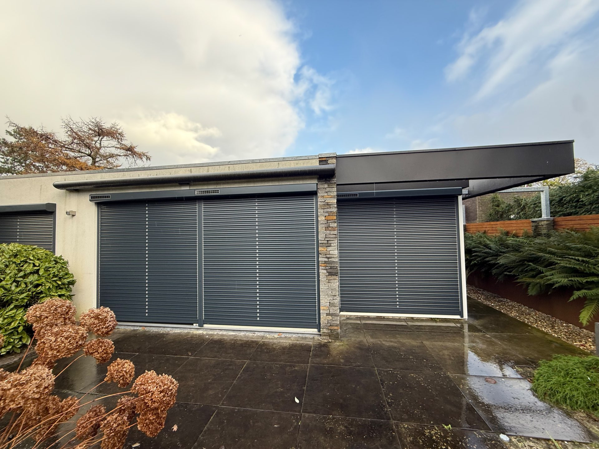 De klant koos voor een combinatie van rolluiken en rolluiken met kantelbare lamellen van het merk Bubendorff. Bij de bestaande woning plaatsten we rolluiken met kantelbare lamellen bij de woonkamer, keuken en andere leefruimtes om zowel de zon te kunnen blokkeren, doorzicht naar buiten te kunnen creëren en de warmte beter te laten ventileren. De rolluiken met kantelbare lamellen geven een luxe uitstraling, waardoor het ook esthetisch bijdraagt aan de woning.